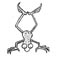 MAX CALAVERA es un solitario muertito de guantes, moño y sombrero que vive en su casita construida en el Limbo.
