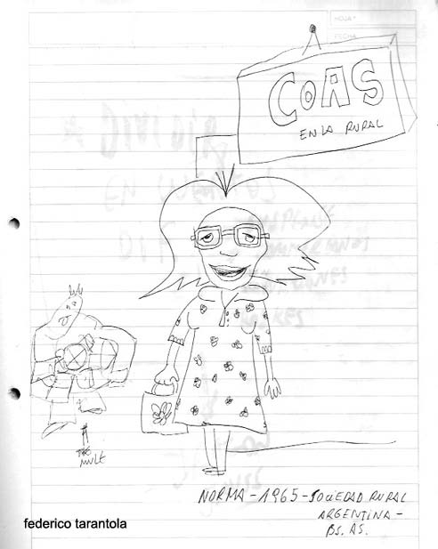 una almacén, exactamente para una oferta, donde caricaturicé a una señora ama de