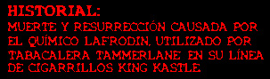 INMEDIATAMENTE, TODO TAMMERLANE SE CONVIERTE EN UN CAOS: AQUELLOS FUMADORES QUE TOMAN CONTACTO CON KING KASTLE, FALLECEN CASI DE INMEDIATO DEBIDO A DERRAMES Y ÚLCERAS.