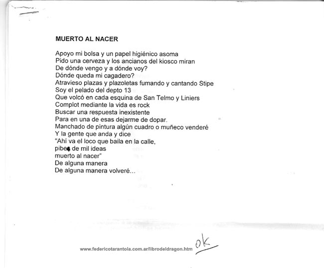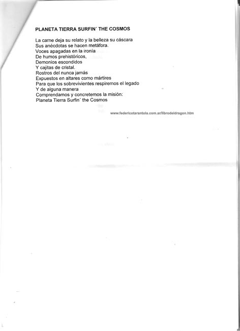 CON LA ESPALDA, RODILLAS, NUDILLOS Y BRAZOS RASPADOS / LA BOCA ROTA Y LOS DIENTES PARTIDOS / SURFEÉ AL DRAGÓN Y RODÉ POR EL ASFALTO / Y ARRASTRÁNDOME HASTA ACABAR SU LIBRO / TERMINÉ BAILANDO CON MIL CICATRICES EN EL COMEDOR DE MI ART & LIFE