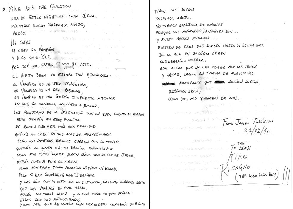 ESTE LIBRO NO INTENTA SER UNA NOVELA, NI UNA BIO, NI UNA HISTORIA, PERO ES TODO ESO JUNTO. SE CONSTRUYE CON FICCIONES, REALIDADES, POEMAS, CANCIONES, SECUENCIAS, CARTAS, ANOTACIONES Y TEXTOS PERDIDOS, Y NO TIENE CORRECCIÓN ALGUNA SALVO LA CONCEPCIÓN Y RECORTES PLASMADOS EN CRUDO,