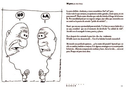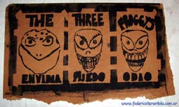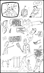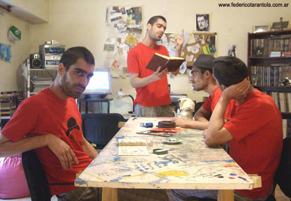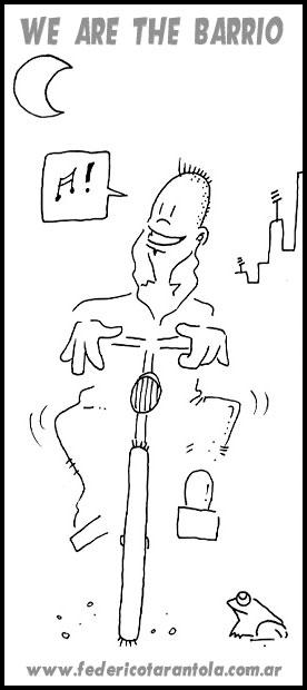 y pasate tardes enteras jugando con él, armando carpetitas, pegando, copiando, archivo de aquí, archivo de allá, bajar alguna que otra cosita, carpetitas, programitas, juegos "copantes", msn, fotolog, fasebuk, camarita de fotos, celular con cámara, recital de Soda Stéreo, más fotitos, fotitos de todo y de todos (de acá hasta las estrellas), y más tardes en la maravillosa p.c., y noches, y días enteros, y después de unas cuantas historias de amor un par de vinos, unos porritos, unas pastiyas, jugar con el poder de la tecnología, armar citas, noches de distintos, diversas fiestas huecas (casi europeas), argentinos bizarros...! mientras el sol gira, mar del plata para el verano, la ropa, el regalo, el "coso" de moda, el shopping y los complejos, "fass-fudd" y nos estamos olvidando de la pastafrola del domingo, y la guerra, la tele, Tinelli y Suar (nota: mandarles currículum), y nos matamos a pajas frente a ese culo/confort que nunca llega, porque nunca es suficiente, civilización tras civilización, planetas de las bestias que elijamos ser, bestias con miedo, pasión al bien y culto al mal, como buenos humanos (perritos falderos de un amo que nos apunta porque no sabemos cuidarnos solos), excusas, religiones, inquisiciones, masacres, guerras, refugiados de kosovo y refugiados de kosovo de mentira (eran pibes alquilados en un shopping de pibes), rastreros, mentirosos, hipocondríacos, inventores de la palabra "puto", porque "gay" es muy puta para ser usada por machos, hombres, mujeres y niños y embarazadas, luchando todos por un asiento en el colectivo, animales (ganado otra vez!) ganado somos porque nos gusta jugar a ser fríos, devastadores, masacradores del árbol que nos da sombra, porque llena la panza y es un buen escarbadiente (me acordé del dibujito de la Warner - otro día les cuento), pero nos enjuagamos con yugo y castigo: más latigazos porque tenemos el pecado de "querer ser" (nunca ser) y eso nos destina al círculo infinito, porque estamos destinados a ser un orto y una boca, un aparato que come, duerme y caga... y me voy (me voy, repetiría Sandro)... que me tengo que afeitar, que mañana es lunes y el laburo hay que cuidarlo (...diría mamá)