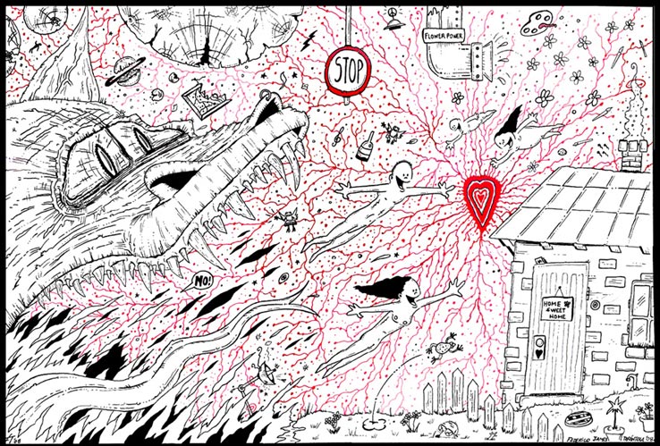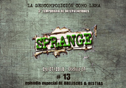 Seremos bestias. / Predadores de Pastillas a Batería / Discapacitados de Electro y Alma. / Nos asesinaremos fumigándonos / por escapes de transportes / que sólo conducirán / a la Iglesia de la Secta: /
