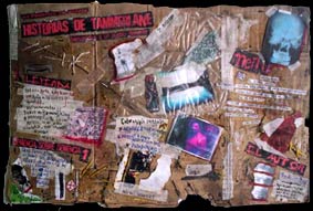 el mundo es un horror / quien no lo dirá / más aÚra con lo electro / morbo-pixeles / leyes & estampitas de moda / tiros en las pilchas del forever / camisas rotas like rollinG Hulk / surfeando los Froggys vestidos de Dragones / Dragones humanos / "auxilio" / (siempre hay un pibe en la otra cuadra / que yanostá) / y ya nadie nunca más cenó en paz / ni fumó ni charló(t) / ni tangueó otras danzas / en las veredas. / sólo pajas y miedo de coté. / costilla / pacotilla on tiví / los monstruos han cambiado / venden miedo, usan al miedo / poseen al del miedo / roban & violan & bang-bang / baldozas enrejadas como rejillas / trapos que limpian / los coágulos cocidos / al sol que todo lo mira / eterno / ...e (quizás) inexistente.