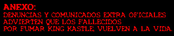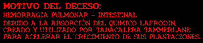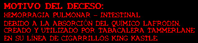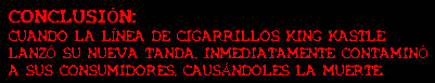 EL MORTAL QUÍMICO LAFRODÍN SE HA DISEMINADO POR TODO TAMMERLANE A TRAVÉS DE SU LÍNEA DE CIGARRILLOS KING KASTLE.