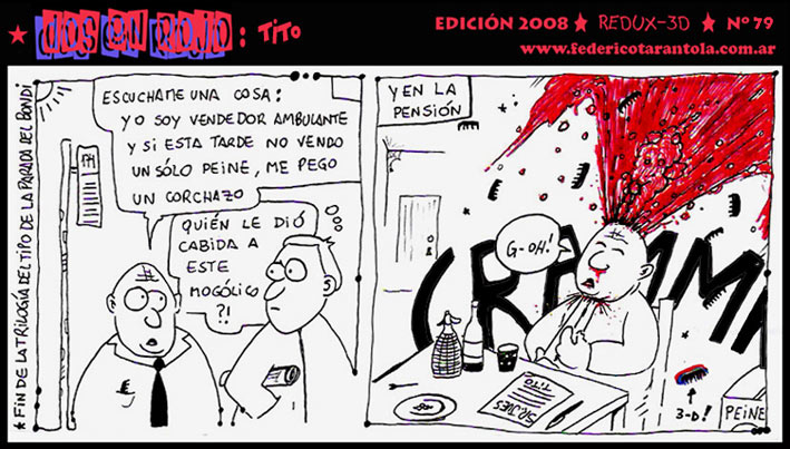 QUE SERA DEL SKIN ESCROTO SIN SKIN / PELOS EN LA DAMAJUANA / BOLA QUE GIRA HASTA ALLÁ / AHORA LA BOLA VIENE PRA CÁ / TODAY I´M NOT TODAY / QUÉ SERÁ DEL PRESPUSIO DEL TOMORROW / QUE ARRUGADO O DISPARAO SEVÉ. / WHERE HAVE ALL THE SCROTS OF THE JUDEN GONE? / LONG TIME PASSSSSINg! / SIN EMBARGO TODOS MEAN EN LA ESQUINA / MEAN EN LA ALCANTARILLA & PETARDOS / COCOROuCHS QUE SALEN Y DICEN / "HERE´S JHONNY, I´M IN THIS HOTEL" / SEVÉ PORQUÉ / QUESERÁ-SERÁ / POR EL FAKINOLORRRR / PÑÍ! / TIKI / TAKA... / Berp!)